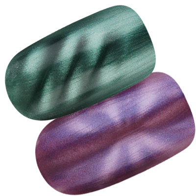 It’s simple to use, apply the polish, wave the shaped magnet over the top and you have some pretty interesting looking nails!