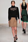 The L’Oreal hair team enhanced those cheekbones by tightly braiding at the temple and pulling back. Sounds painful, but fashion feels no pain!