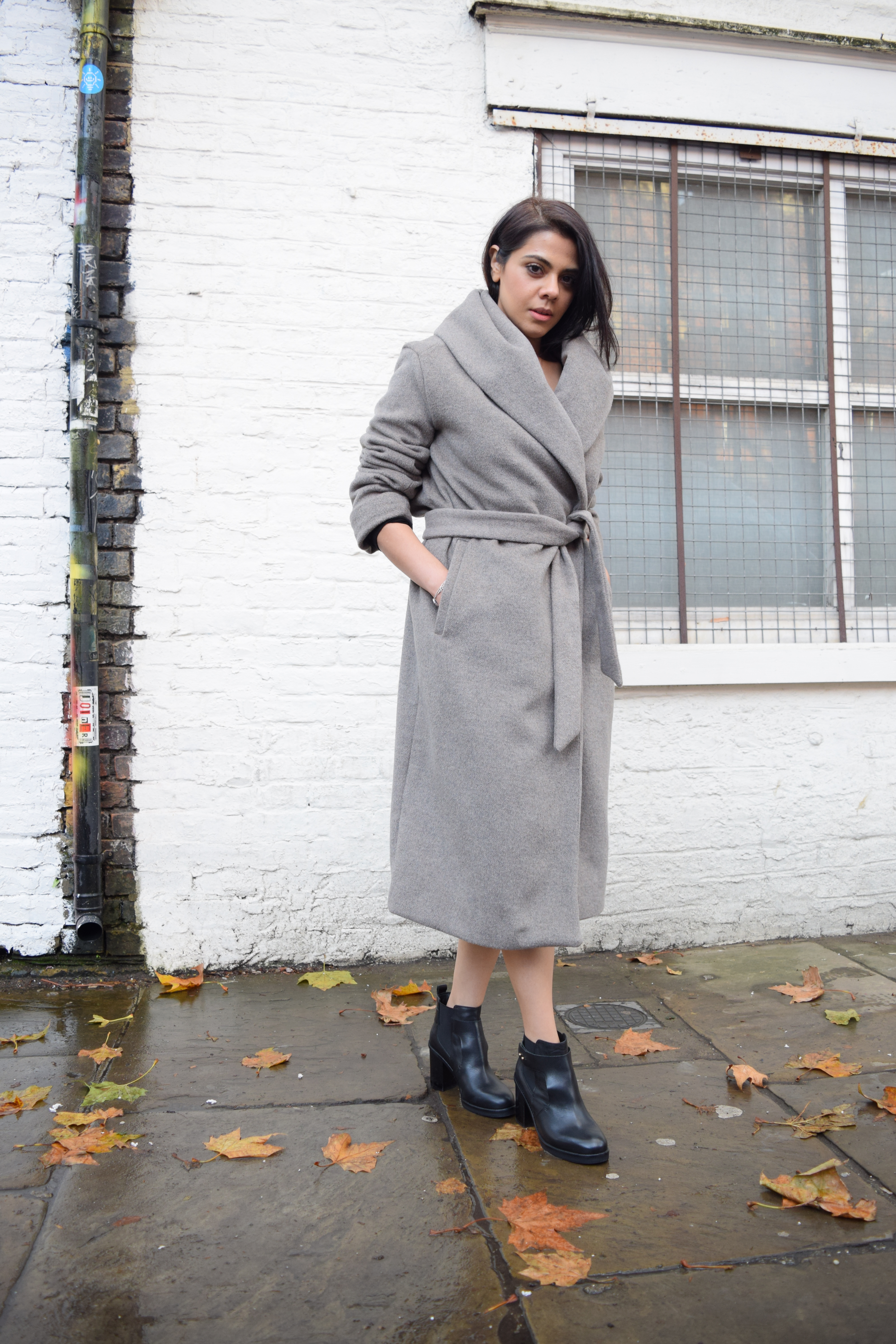 This lush, soft grey/mink wrap is from Zara and is going to be a stable this winter. It looks just as good tied up as it does unbelted. The only tip i’d give is not to pull the wrap over too far when belting up, because then you really will look like you when straight from bed to street.