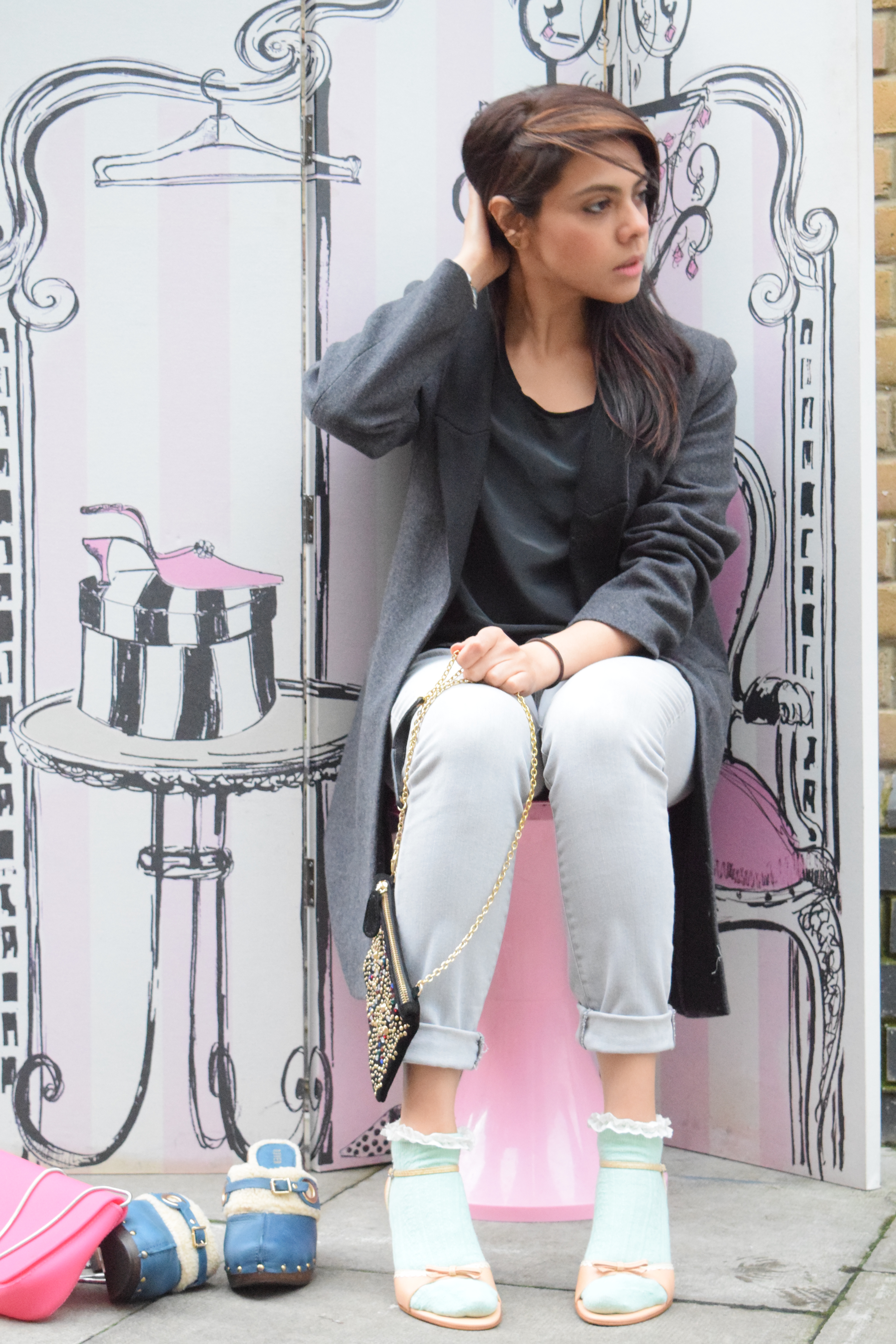 Mixing androgynous shapes with some feminine accessories. Combining greys with girly pastels. This Maison Scotch overcoat is a current fave and the perfect coat to take me through the in between winter/spring weather.