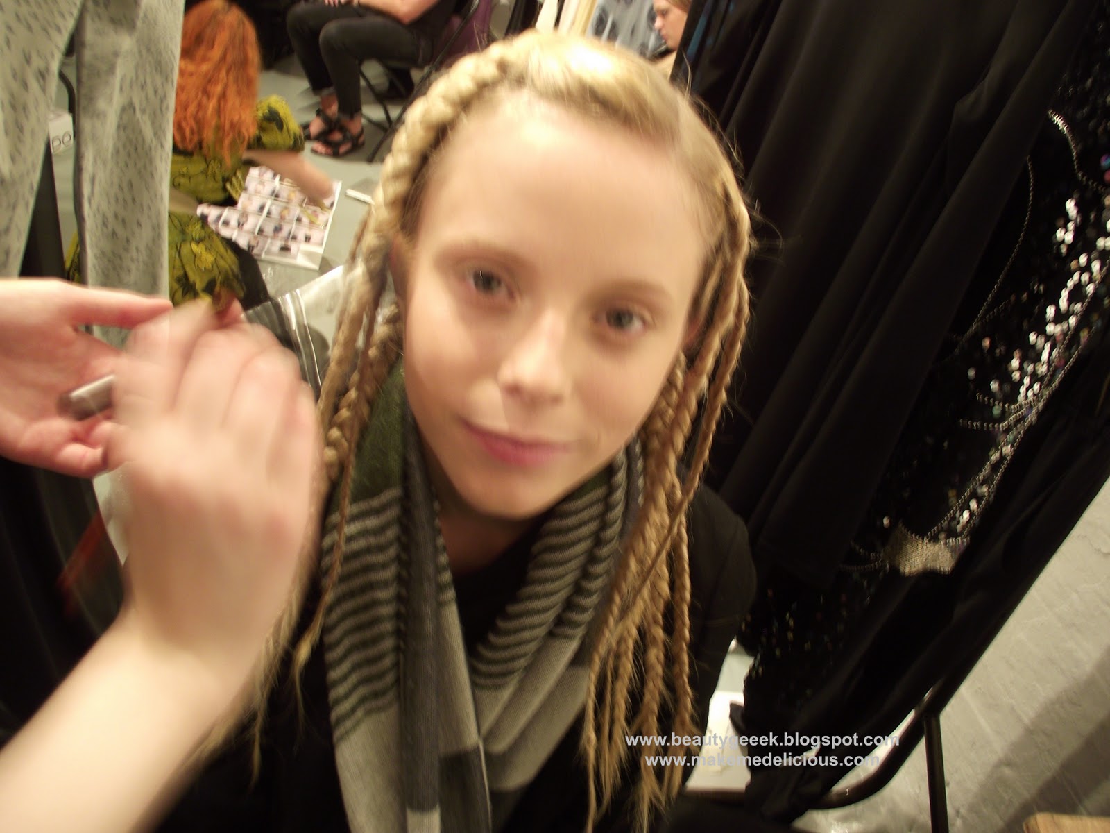 The L’Oreal hair team were fab, they added hair pieces to the girls’ natural hair, then tightly plaited them. These were taken out just before the show achieving that BIG, almost Afro effect. It looked gorgeous, i might try it out myself.