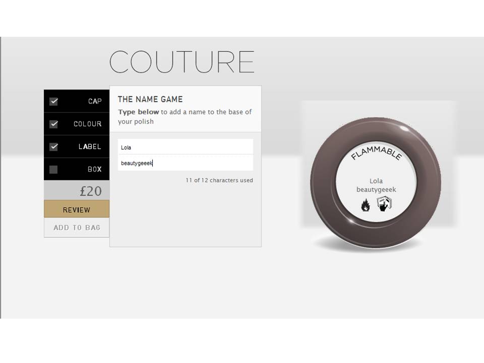 Put this on your wish list ladies! Nails Inc have launched Nails Inc Couture, a service which allows you to create a very personalised nail polish. Customised from cap to label. It would make an amazing present, but actually i’d quite happily create one for myself..so sad!