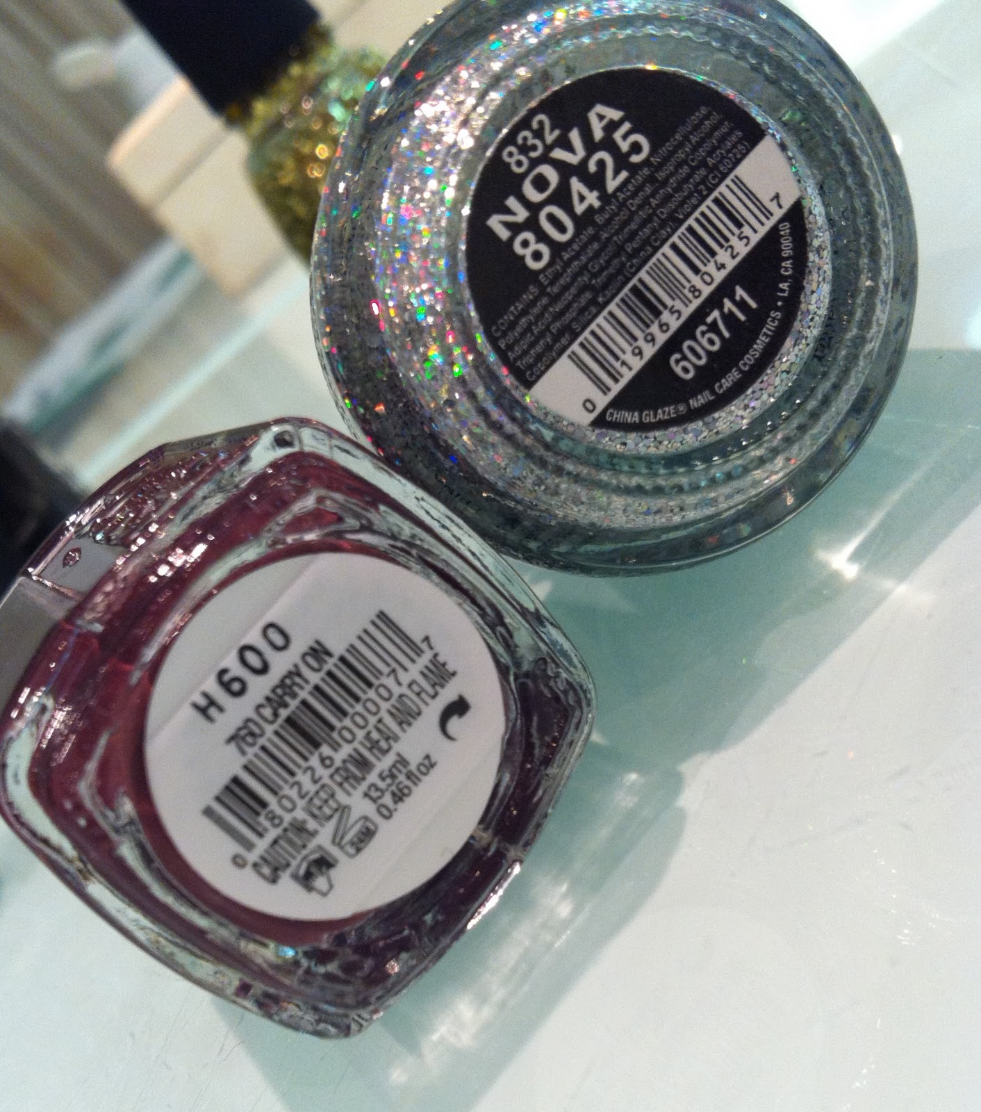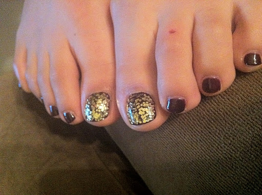| Oly had Essie Carry on with China Glaze Nova on her thumb and big toe |