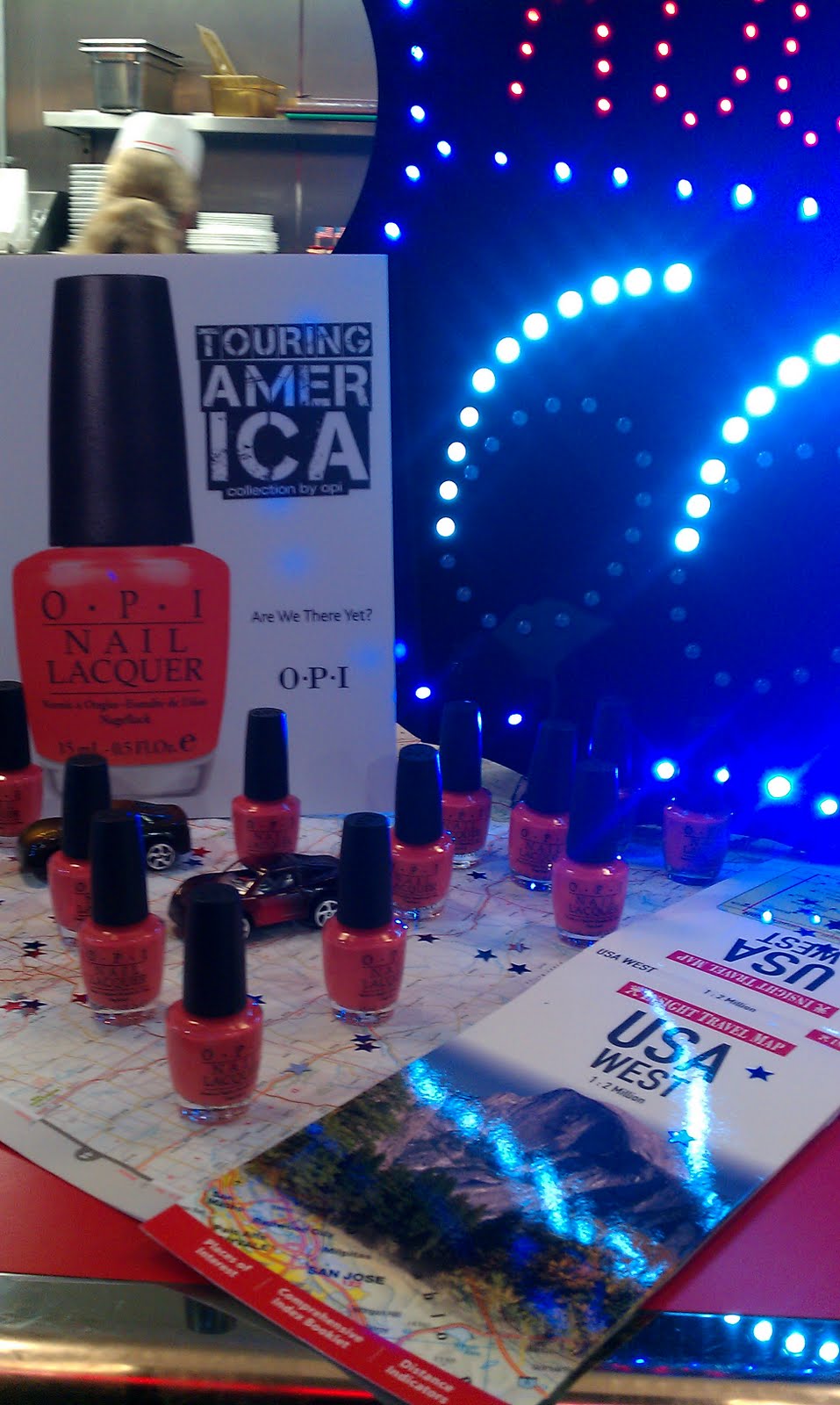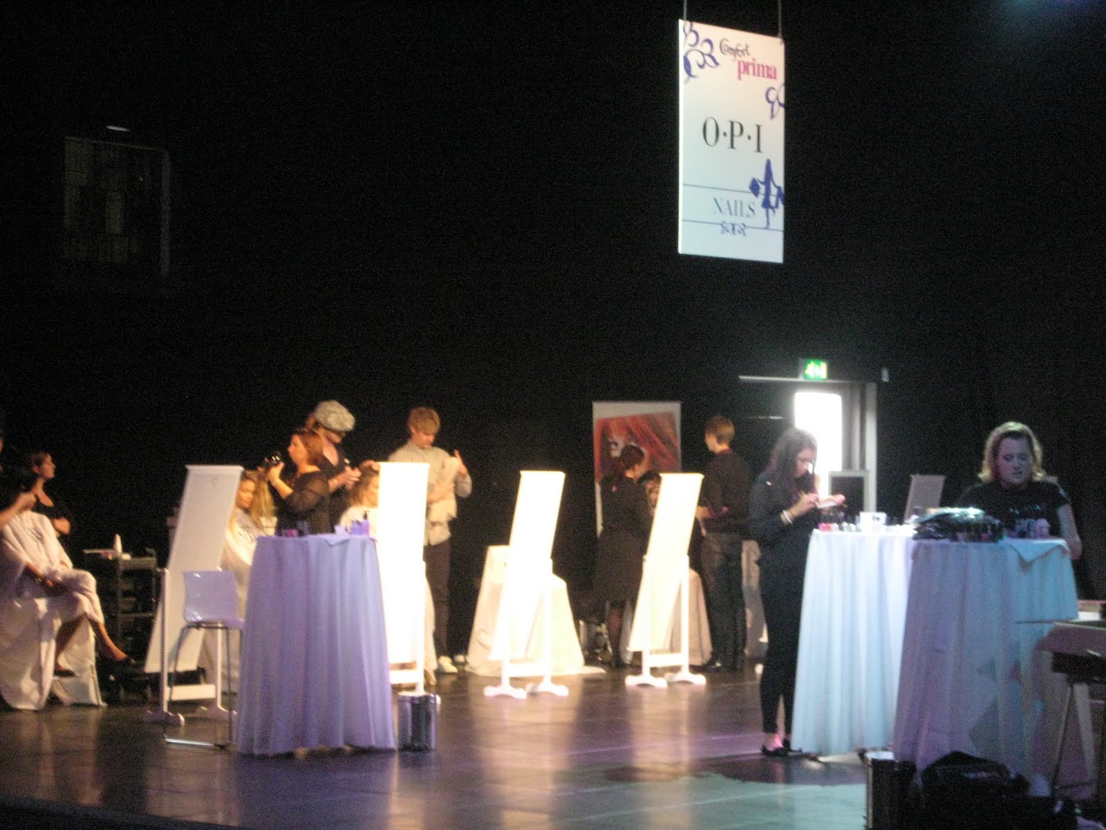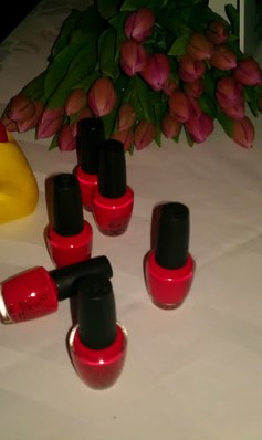 Backstage, i was with the OPI tech team picking the brightest and boldest shades for nails. Celeb stylist Karl Plewka wanted nail colours to coordinate but not match the bright orange lips that the models would be sporting. He wanted to create a Tom Ford-esq look for the runway.