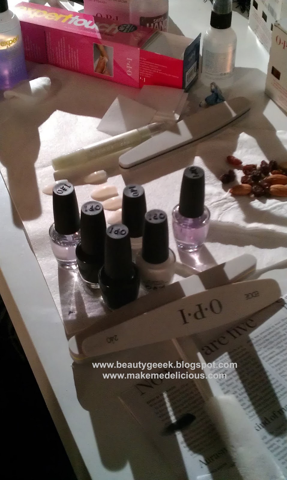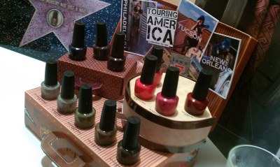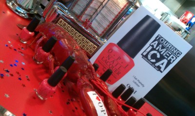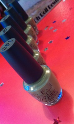 We used two different OPI shades to maintain that bright high gloss 70’s image. A fuchsia pink on fingers ‘You’re A Pisa Work’ and a bold lime green on toes – ‘Who The Shrek Are You’. They look like a rather odd pairing, but actually worked perfectly to create a retro look. Everyone loved it. The models were super keen on the fuchsia, Fearne also wore these shades and was pretty chuffed with her nails .