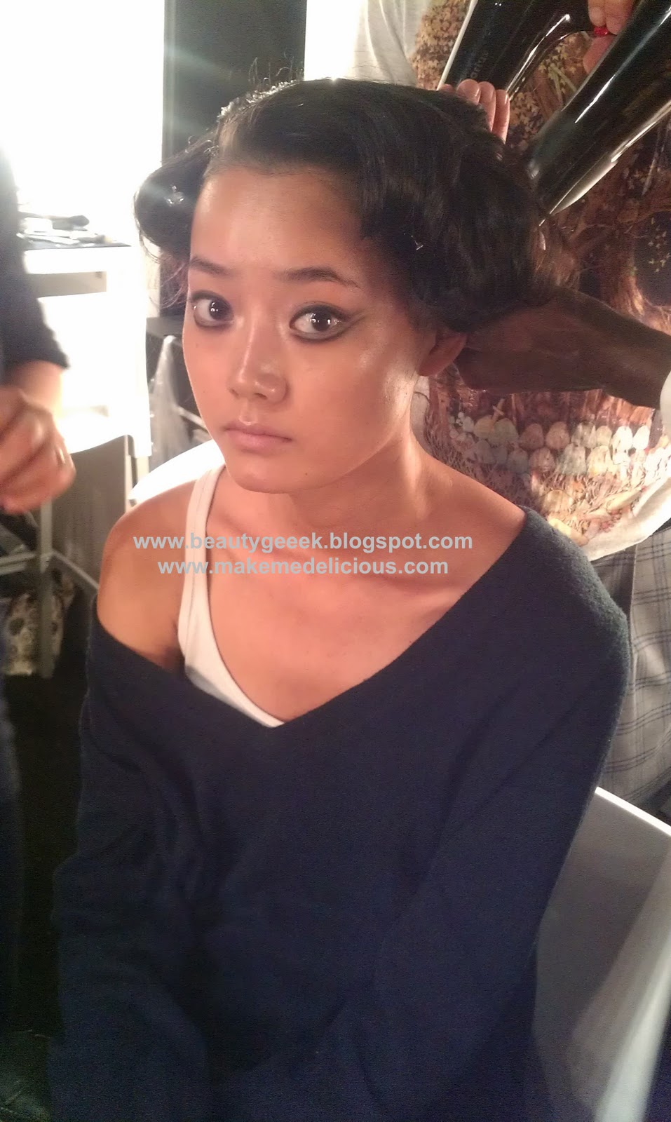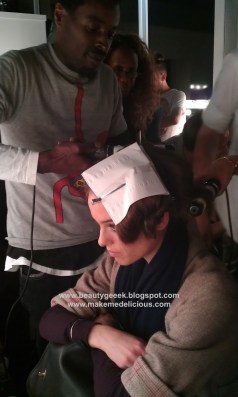 The L’Oreal hair team were fab, they added hair pieces to the girls’ natural hair, then tightly plaited them. These were taken out just before the show achieving that BIG, almost Afro effect. It looked gorgeous, i might try it out myself.